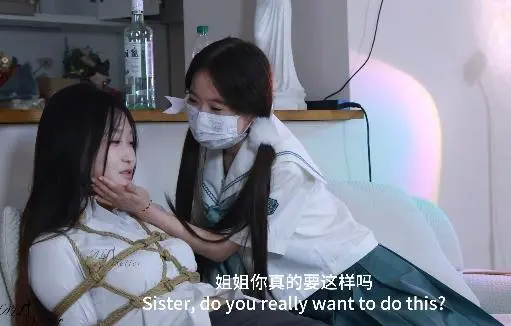 小萝莉青青无聊加发现一些不为人知的事,而给姐姐倩倩捆绑起来欺负戏耍,然后再放入浴缸,上演湿身诱惑。