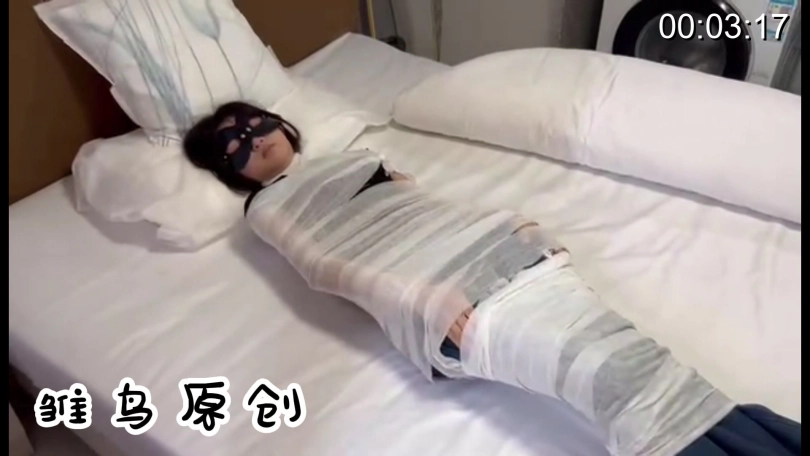 双重感官,先丢麻袋,各种鞭打,戏弄,能够感受到她的害怕,恐惧,原来是绑住手脚再丢麻袋,再捆住麻袋,极致!然后把她再裹绷带,做木乃伊。可惜绷带不够