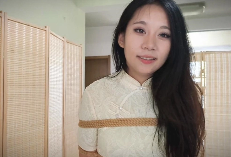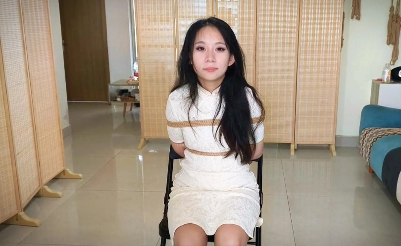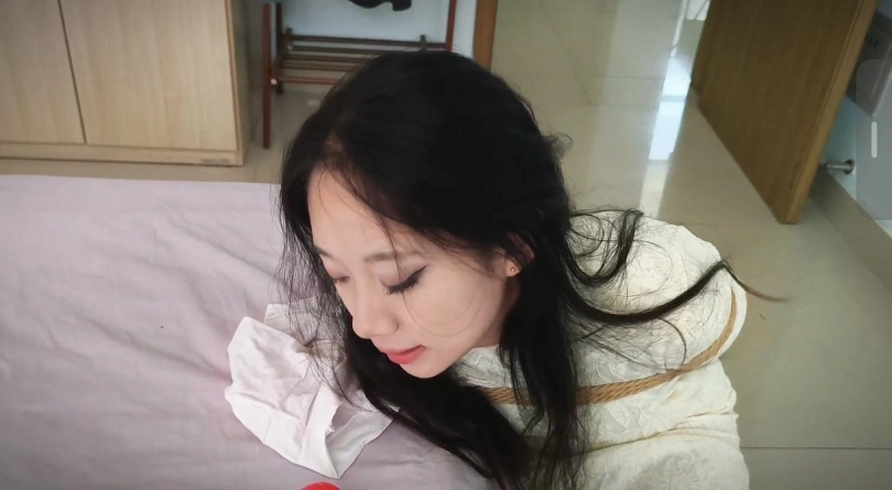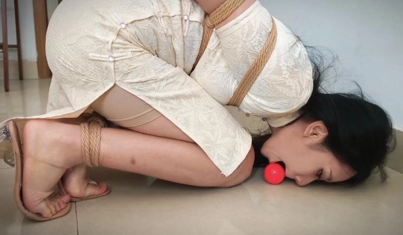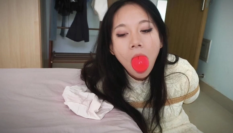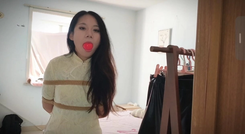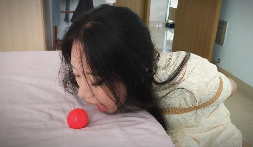 先把口球摘掉,模特先走到指定位置穿上鞋子,在到床上,只能用嘴打开丝袜取到小球,最后用嘴叼着小球送到客厅指定位置,就算挑战成功