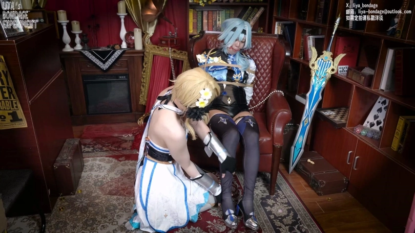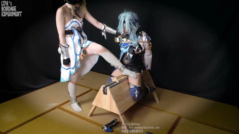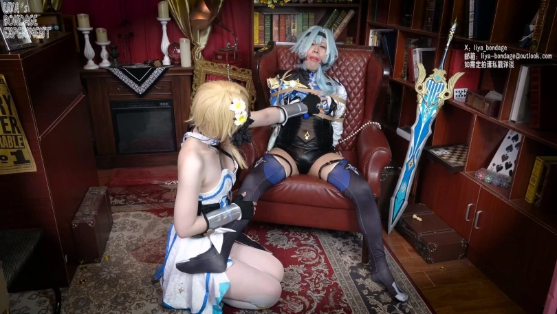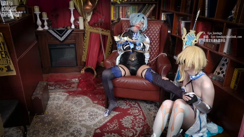 优菈做了一个噩梦,在噩梦中,被坏人绑在沙发上,带着口球,肆意玩弄着身体和腿足,之后又被按在木马上,受尽凌辱