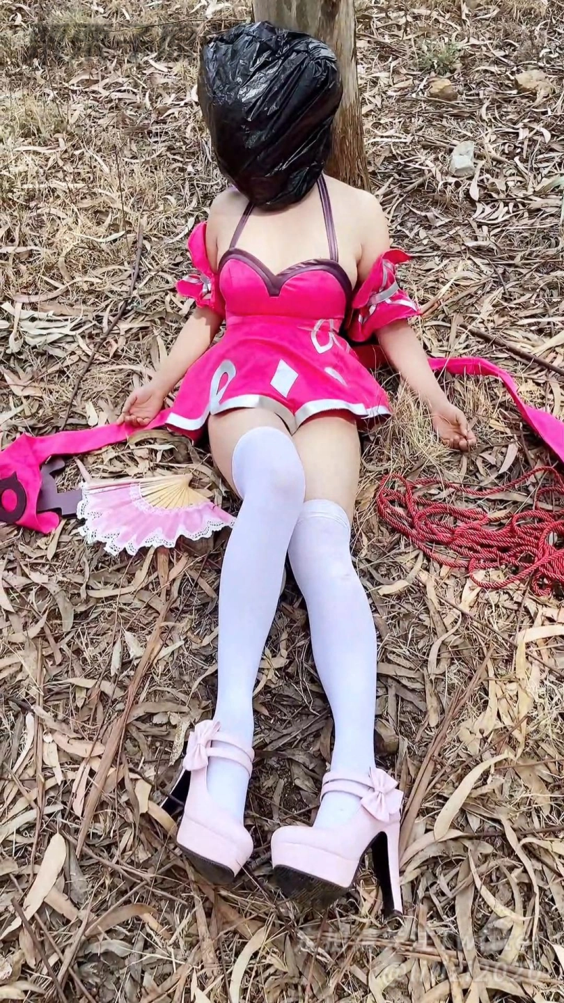 拍摄小乔COS的女COSER,被M晕后用束缚工具将她的捆在郊区的树上,塞上快乐蛋遥控!