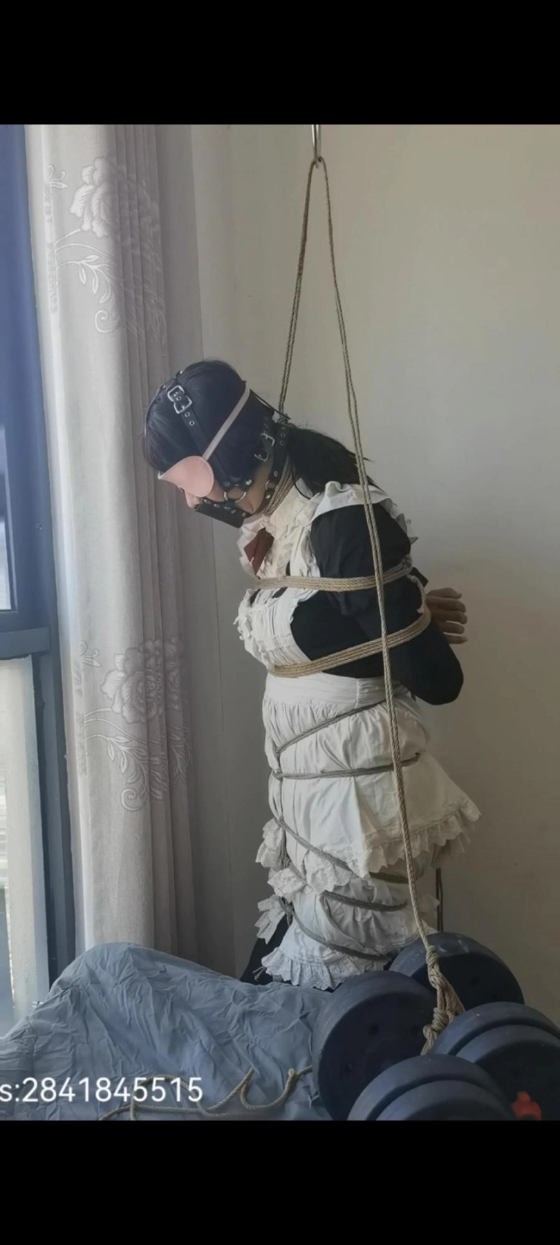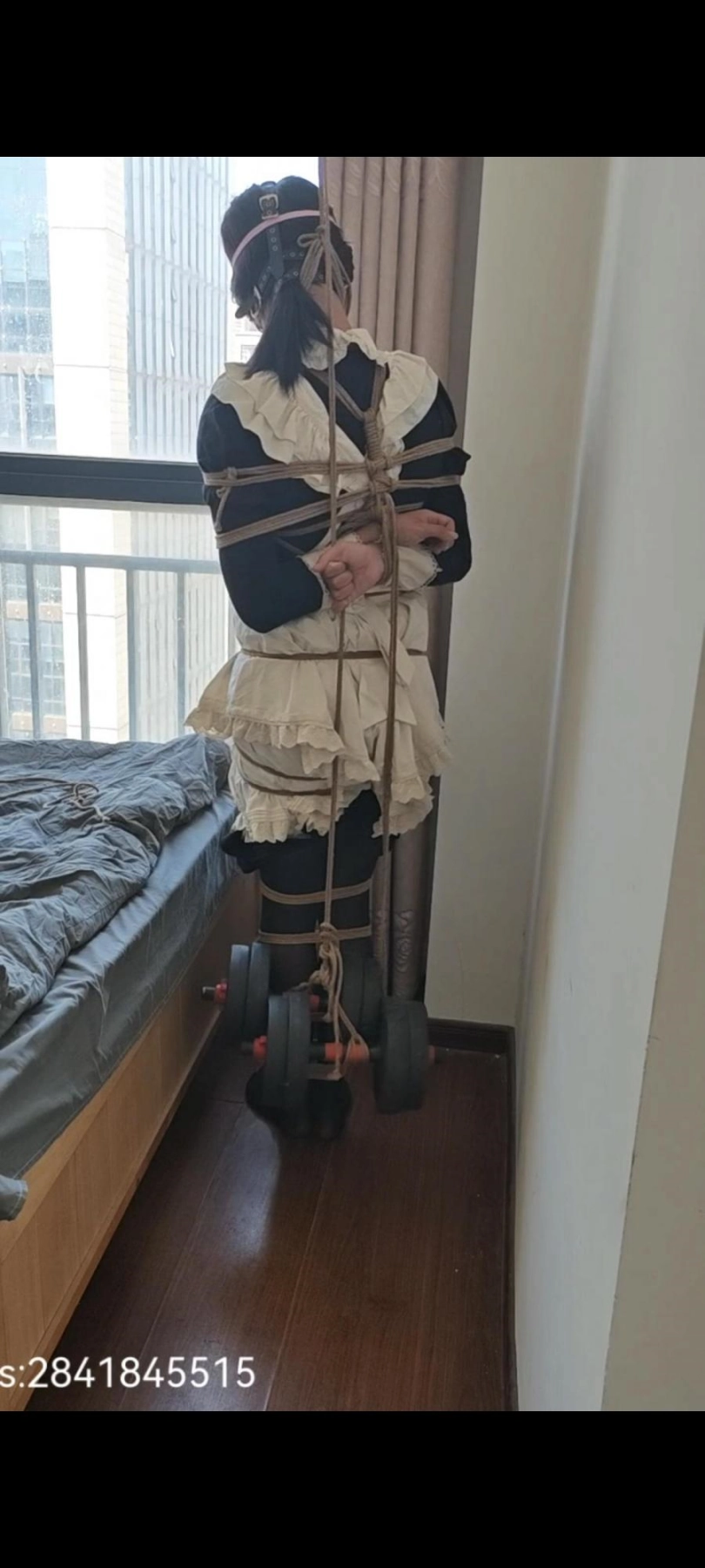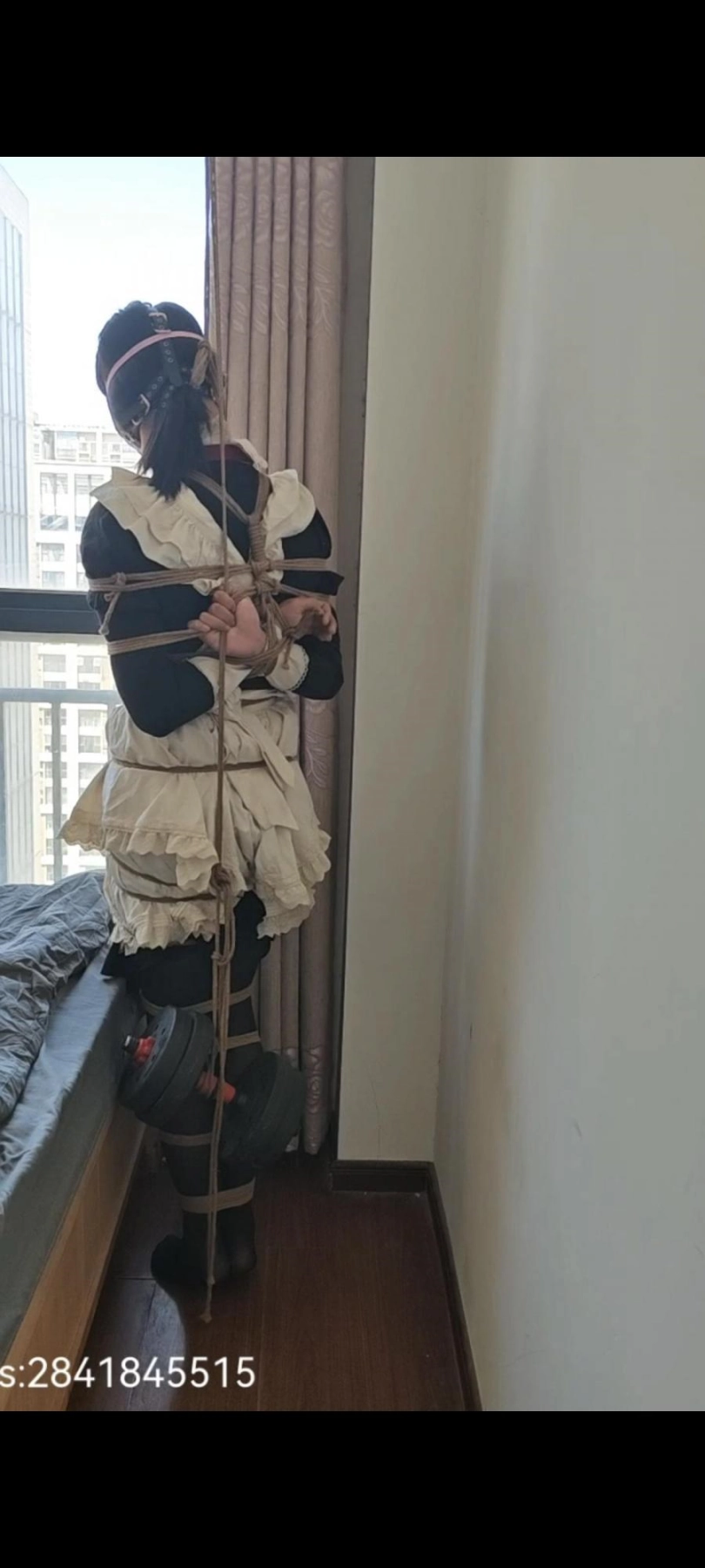 伪娘m的哑铃勒脖子强制踮脚罚站。只能踮着脚用手托起哑铃才能舒服一点