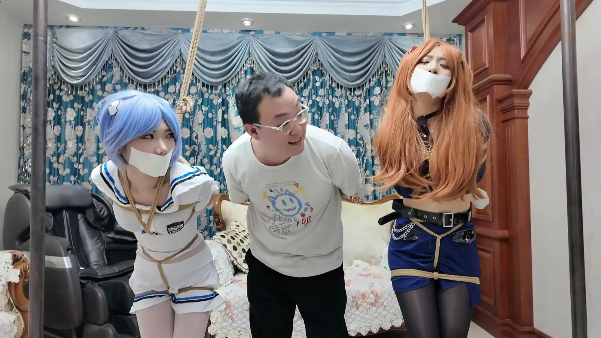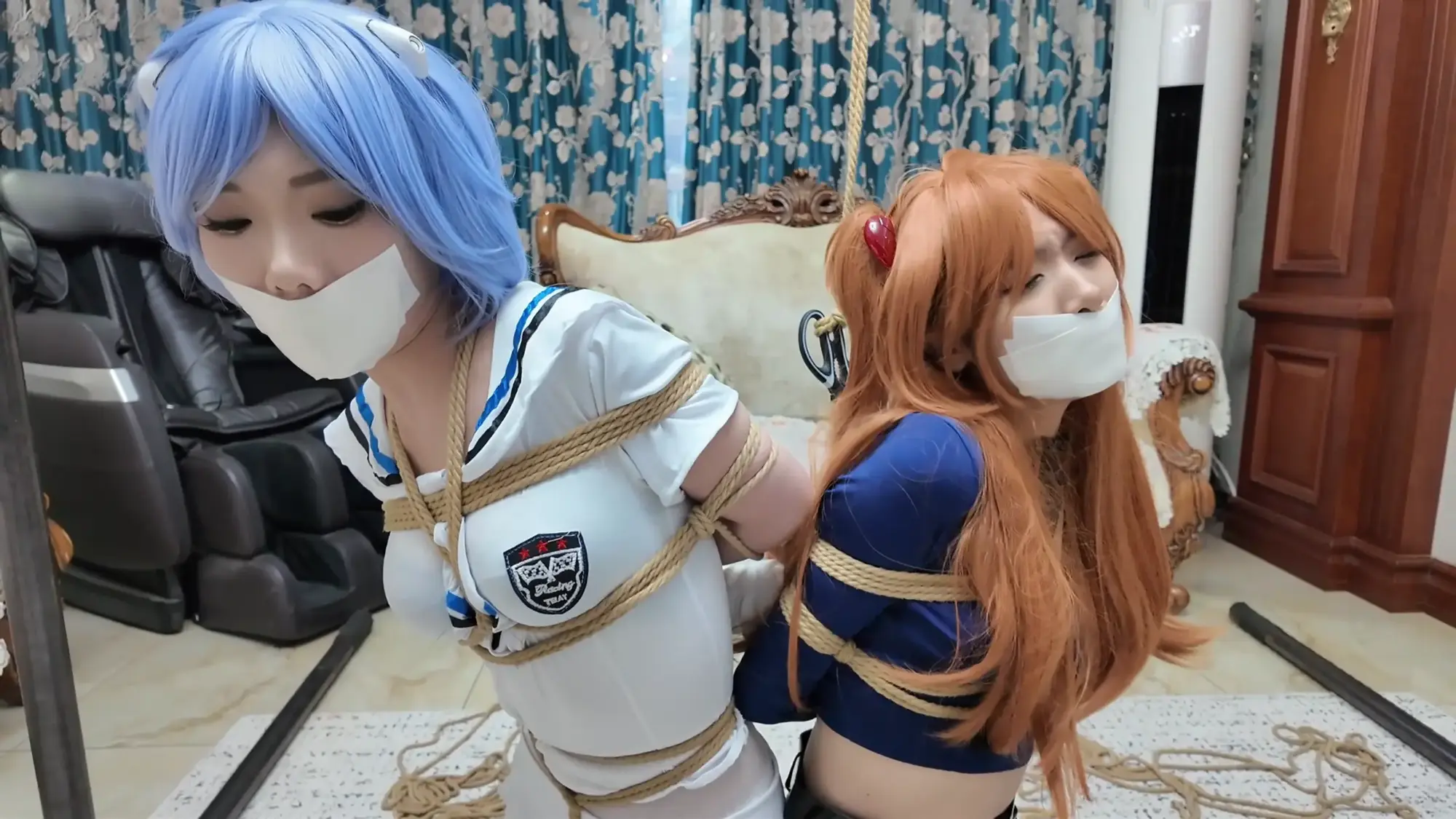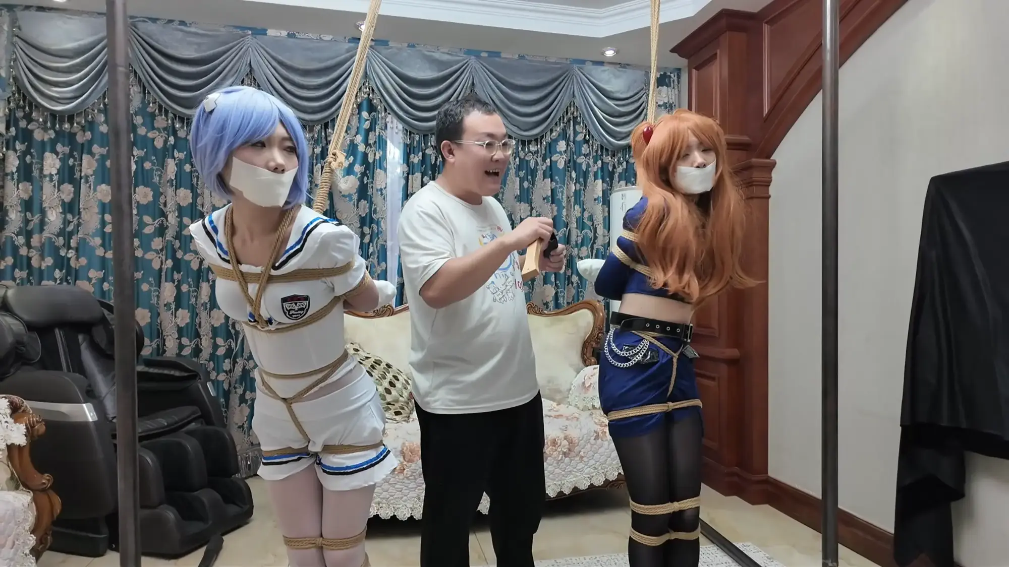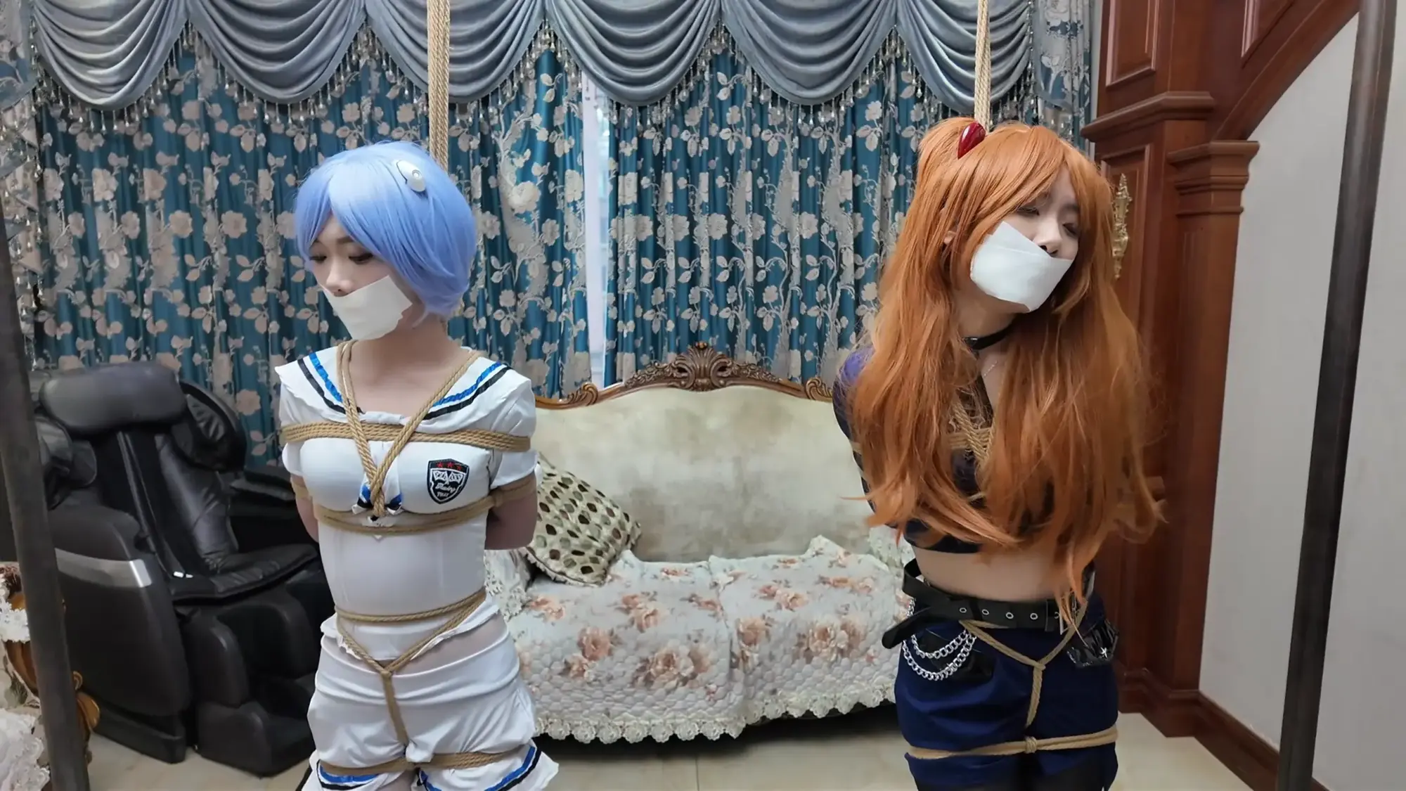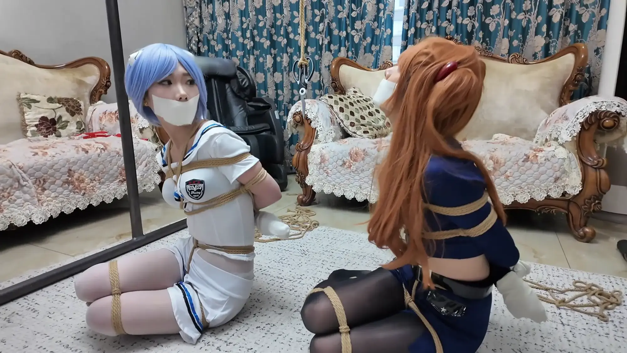 白色水手服“绫波丽”和蓝色搜查官服“明日香”的换装play!