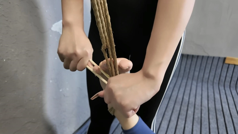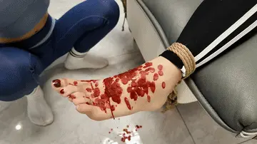 瑜伽教练费劲力气挣脱束缚,刚要离开,听到另外房间有动静,打开一看,原来十一被她男友捆在床上,已经失禁,被折磨很久的瑜伽教练可是要好好的报复一下,鞭打,戒尺,夹脚趾,挠脚心,堵嘴,打屁股,没想到十一男友突然回来,一下子制服了瑜伽教练
