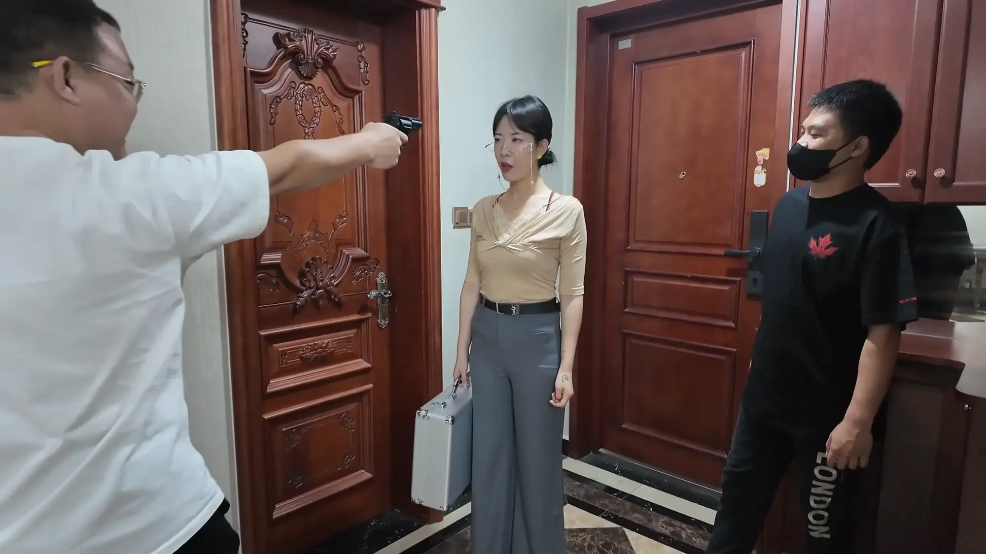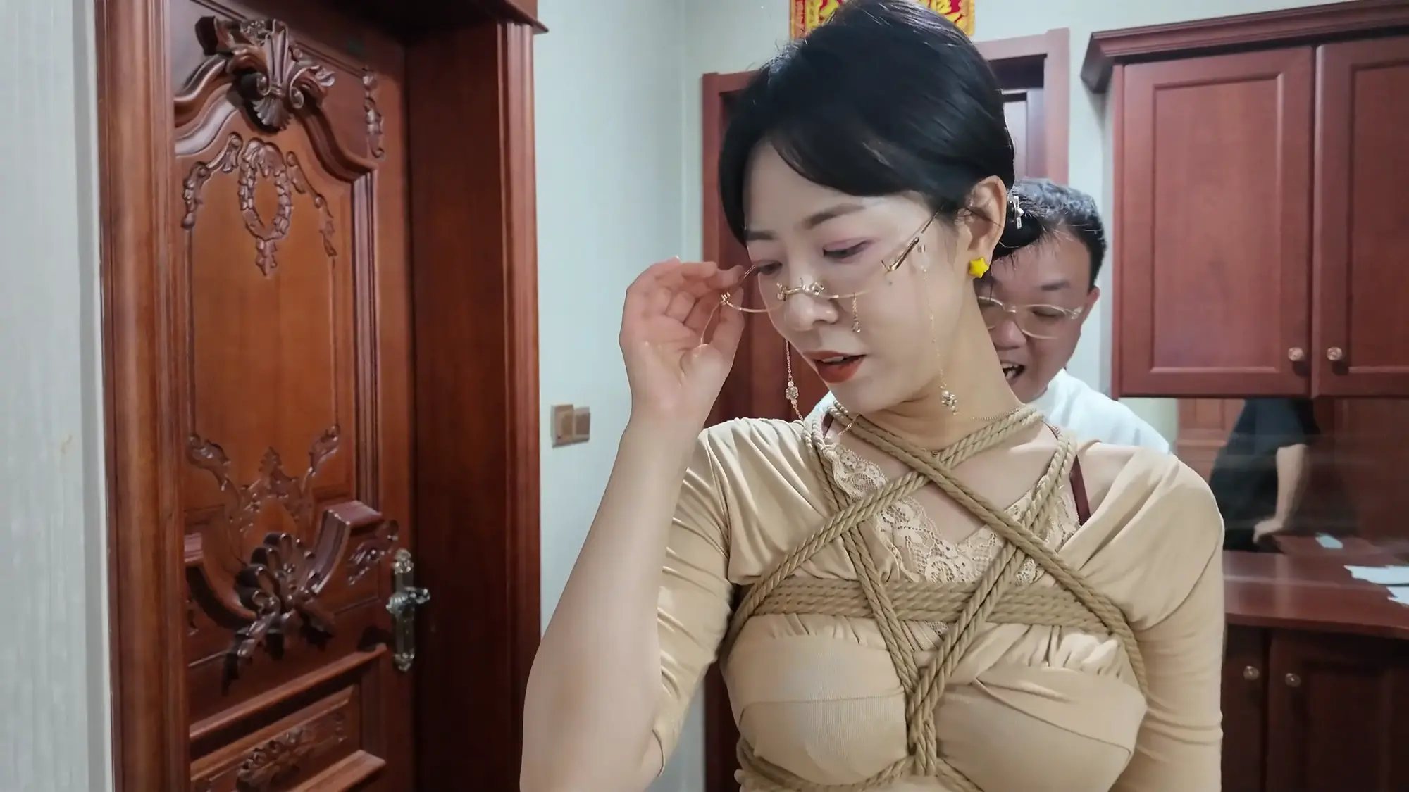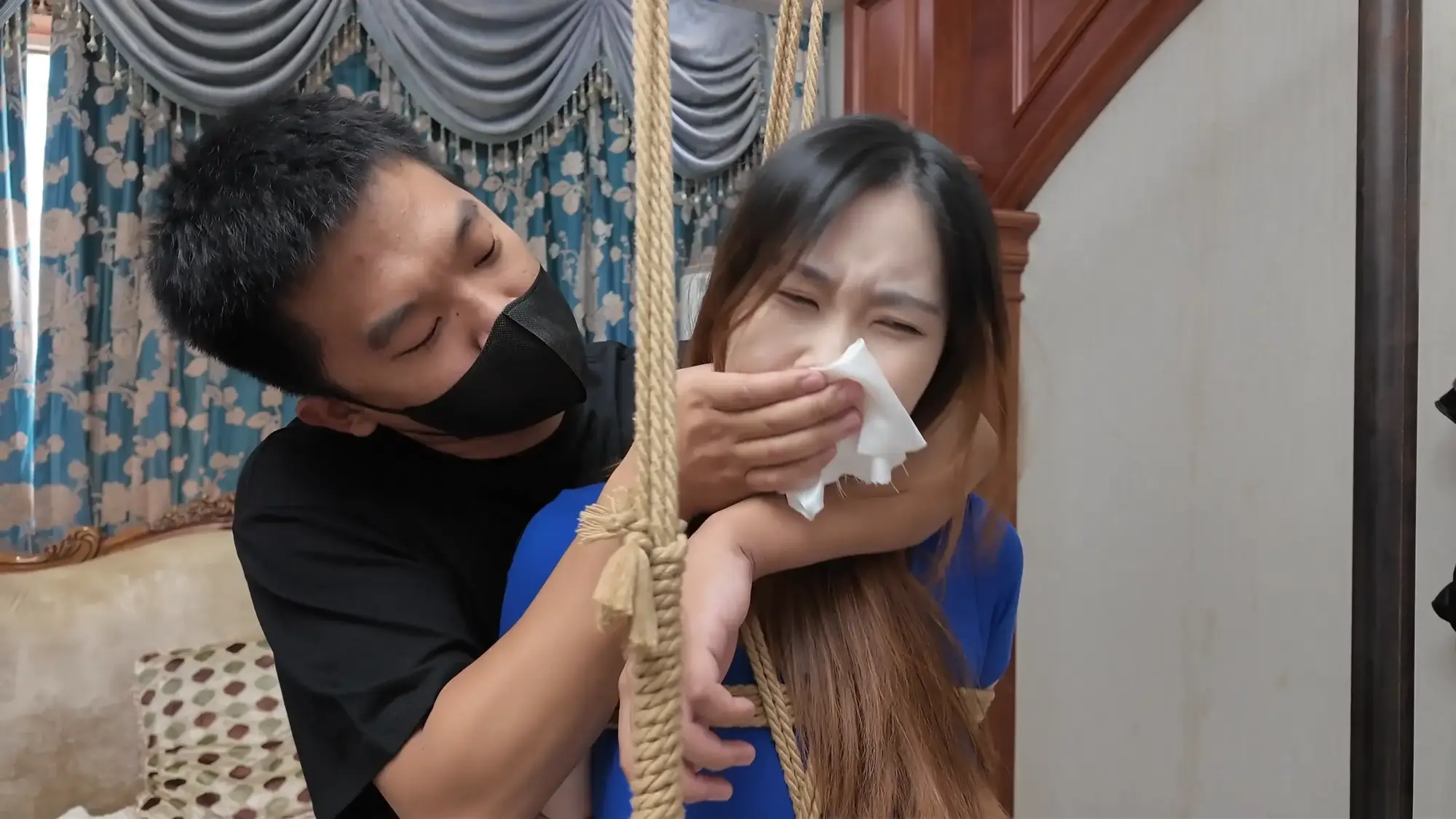 【视频时长】:00:39:08 【文件大小】:2404MB 米粒和佳雯对剧本的理解都很精准,完全代入了角色,尤其是米粒扮演的e小姐,笑面虎和媚女的形象切换演绎的淋漓尽致,佳雯则是稳定发挥,把本系列中雷姐角色泼妇毒蛇的形象塑造的极为形象,南清虽然演技上不如前两位,但进步也是肉眼可见的,尤其是说台词和敢直视镜头这两个方面,希望再接再厉。 前情提要,南清探员逃跑失败,再次被雷姐的手下抓住,雷姐也被自己的手下背叛。此后,南清与雷姐被囚禁起来,两人分别被换上体操服与瑜伽服遭受折磨。某一日,南清被单腿吊缚,雷姐则是头戴马具,嘴塞口球,m字开腿坐在椅子上,两人照常被两个男人玩弄,小弟表示马上就要把她们卖掉有些舍不得,大哥告诉他自己准备黑吃黑,钱和人自己都要,并说利益最大化是雷姐教给自己的,看到雷姐依旧瞪着自己不肯屈服,大哥开始用力锤击雷姐的腹部,并拉扯雷姐的股绳教训她,一旁的南清也一样不服气,被拿掉口球后依旧放狠话要杀了他们,两个男人大笑嘲讽,小弟拿起鞭子开始教训南清。过了一会儿,大哥的手机发来买家的短信,他命令小弟把南清和雷姐捂晕关到卧室里,一切准备妥当后,大哥让小弟下去接人,自己做好偷袭的准备。 画面一转,e小姐出场(米粒扮演),她提着箱子边走边接起电话,电话另一边的老大命令e小姐拿到获取后就把卖家干掉,e小姐轻蔑一下说一定完成任务。e小姐与小弟会面,被小弟带上了楼。刚刚走进屋子,e小姐就察觉到了不对劲,并让躲在角落里的人出来。随后大哥拿着枪走了出来,夸奖e小姐是个狠角色并且还是个大美人,e小姐表示他们胆子不小敢黑吃黑,并告诉他们如果让自己的老大知道他们怎么死的都不知道。小弟不耐烦的让e小姐放下箱子,双手背后站在一边。e小姐淡定自若的照做,并用充满挑逗的口气说不开枪杀了自己,摆这个姿势是不是要绑。小弟验完钱后大哥回应e小姐本来是准备一枪干掉她的,但实在舍不得杀掉眼前的大美人,于是大哥命令小弟拿绳子去,将e小姐紧密捆绑了起来(捆绑过程全记录),捆绑的过程中e小姐不停挑逗眼前的两个男人,把两个人迷惑的神魂颠倒,但为了保险起见,大哥先让小弟把米粒关起来,慢慢料理她。 e小姐被带到了关押南清雷姐的房间,小弟拿掉南清雷姐的口球让她们聊聊天,雷姐刚被摘掉口球就开始痛骂,被小弟教训了之后暂时老实了下来,坐在一旁的e小姐嘲讽雷姐被自己的手下背叛滋味不好受吧,雷姐惊讶的问她怎么知道这些的,而思维敏捷的南清直接猜出了e小姐的身份,并问她是不是被黑吃黑了,e小姐起身夸奖南清,并疑问南探员这么厉害的角色是怎么被抓到的,而南清则是反嘲她又是怎么被抓到的,e小姐一脸妩媚的弯腰凑近南清说都是为了得到南清才亲自出马的,结果被南清呵斥骂开,一旁的雷姐嘲笑e小姐只会嘴硬,还夸南清骂的好。e小姐突然变脸一脚踩在了雷姐的腹部上,辱骂她丢了同僚的脸,雷姐也不甘示弱骂了回去,南清则是在一旁劝架。听到吵闹声的两个男人跑了进来,拉开了e小姐。e小姐又突然变脸,一脸娇羞对着两个男人撒娇,并请求能不能把绳子松一松,看到这个情景的雷姐和南清都露出了不可思议的表情,辱骂e小姐不要脸。大哥表示既然她们三个都火气这么大,就帮他们泄泄火,南清雷姐e小姐被布条勒嘴带出了房间,站在一起的雷姐与e小姐依旧互不相让,用身体撞对方,被大哥拉开。三人被强制按倒在地用皮鞭抽打... 结尾下集预告,雷姐被脱掉外衣,内衣捆绑;e小姐挣脱束缚对峙面具男被石头击落手中的手枪;e小姐南清雷姐再次被捆绑起来,被神秘人拉着绳子带走。 ![]() ![]() ![]() ![]() ![]() ![]() ![]() ![]() ![]() ![]() ![]() ![]() ![]() ![]() ![]() ![]() ![]() ![]() ![]() ![]() ![]() ![]() ![]() ![]() ![]() ![]() ![]() ![]() ![]() ![]() ![]() ![]() ![]() ![]() ![]() ![]() ![]() ![]() ![]() ![]() ![]() ![]() ![]() ![]() ![]()
