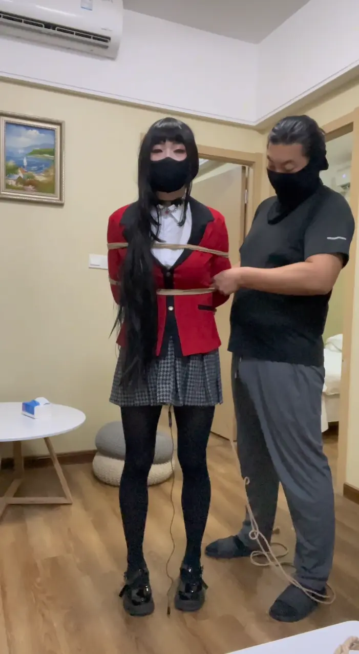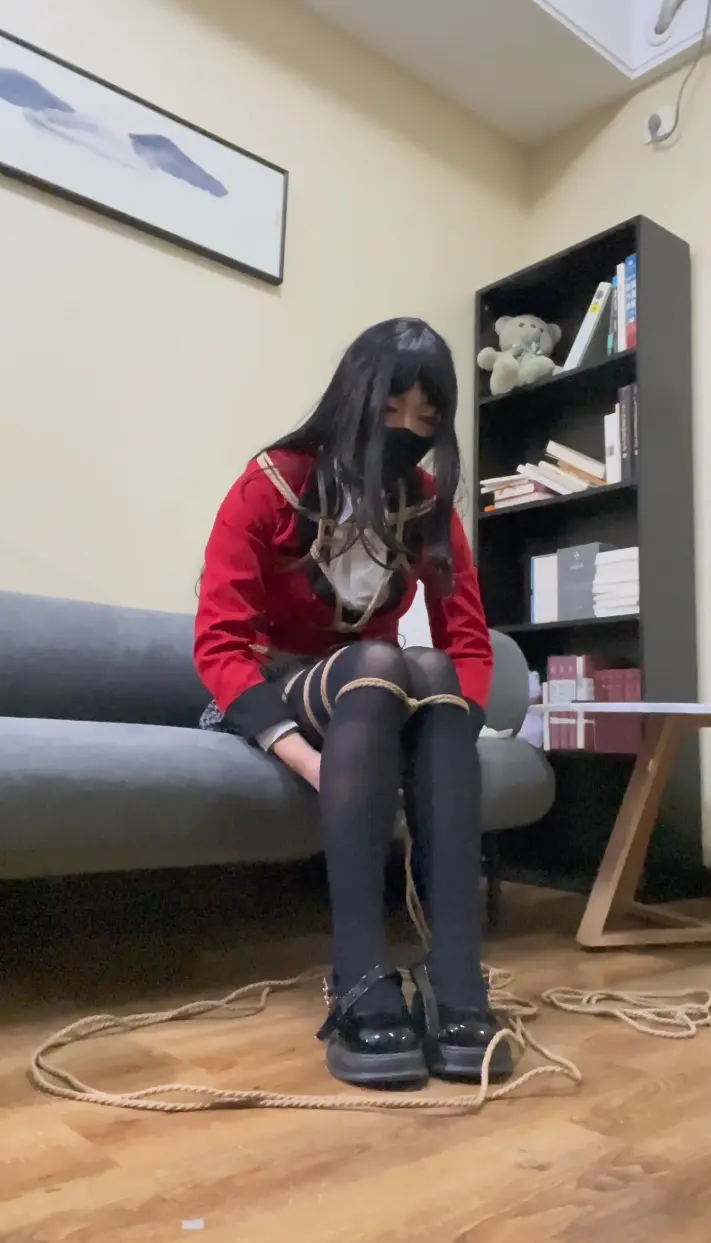 御姐形态的cos小男娘被全身紧紧绑缚起来,浑身上下充满了包裹感,并且下面被戴上了训练器,最终居然能自己逃脱,脱缚能力简直是max!