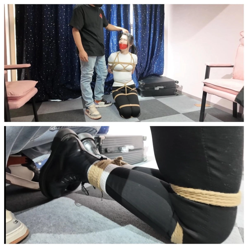 【视频时长】:00:27:08 【文件大小】:2474.68 MB 由高个子模特:雨诺倾力出演。本片含白量极高,足以让喜欢白袜加靴子的同好大饱眼福,给春节假期添加乐趣! 剧情介绍:接“不劳而获•大绑特绑(第二集)”,故事开始,两名坏蛋正在巢穴悠然自得的喝着茶聊着很龌蹉的话题,镜头一转,探清虚实的女保镖雨诺偷偷摸进了房间(剧情和第二集接上了,推荐大家从第一集开始看起)。进入房间的雨诺小心翼翼的摸着搜索情况,可她那里知道,她的一举一动都在坏蛋的监控下!镜头再次给到两坏蛋,口罩坏蛋看着雨诺的举动满脑子就想着快点去把她给解决了,而眼睛坏蛋坏点子比较多,提议让自己假装大声说话吸引美女雨诺注意,虽然让口罩坏蛋前去偷袭,要抓活的!一拍即合,二坏蛋就按照计划行动。此时雨诺被眼镜坏蛋大声说话的声音吸引,来到房间门口观察着,只观察屋内的情况,却没发觉有一只黑手已经向她靠近!摸到雨诺身后的口罩坏蛋不费吹灰之力就把雨诺制服,抓获!然后用枪顶着雨诺的头部,让雨诺高举双手像个俘虏一样往眼镜坏蛋处走去,来到眼镜坏蛋跟着,眼镜坏蛋说到:给我跪下!雨诺骂到:我才不跪你们这些混蛋呢!眼镜坏蛋见雨诺不知好歹,跟口罩坏蛋说到:让她跪下!口罩坏蛋立马上前往雨诺的膝盖处就是一脚!剧烈的疼痛要雨诺膝盖弯曲,让她只能跪下地上!虽然口罩坏蛋又说到:给我双手抱头!不然就一枪打死你!雨诺照做,然后眼镜坏蛋走上前,问她道:快说出你同伴的位置,我可以考虑放了你!雨诺说到:你做梦吧!我是怎样都不会说的!眼镜坏蛋说跟口罩坏蛋说到:别跟她废话了,先把她绑起来,我有办法收拾她。随后将绳子抛给口罩坏蛋,雨诺拼命挣扎,可不是两个坏蛋的对手,被两坏蛋制服并结结实实的捆绑起来!镜头一转,雨诺被捆绑在地上,眼镜坏蛋将一双袜子揉成团,然后口罩坏蛋一只手摁住了雨诺的头,一只手将雨诺的嘴巴捏开张到最大,然后眼镜坏蛋将袜子揉成一团往雨诺的嘴里塞!将雨诺嘴巴塞满后,又在雨诺嘴巴上封了三张红色胶带,被堵嘴加封嘴的雨诺只能呜呜呜的叫着,即便如此,眼镜坏蛋还觉得雨诺的“呜呜呜”声太大,于是拿来了黑色绷带,让口罩坏蛋扯住雨诺的头发,让她抬头,然后眼镜坏蛋用黑色绷带将雨诺嘴巴紧紧缠绕住!雨诺的呜呜呜声逐渐变小。(堵嘴封嘴过程有特写)捆绑堵嘴完后,两坏蛋觉得好久没得玩弄美女了,这送上门的一个可得好好玩玩!于是,口罩坏蛋解开了雨诺的鞋带,拉下拉链,把雨诺脚上的马丁靴脱了下来,露出一双厚棉白袜!(此处有脱鞋及棉白袜特写)露出白袜后,由口罩坏蛋负责雨诺脚心的挠痒痒,眼镜坏蛋负责挠雨诺腰上的痒痒!二人分工合作单单只是用手就把雨诺挠得受不了!随后二人觉得手还不够劲头,还用起了道具(电动牙刷,小齿轮,细铁丝)对着雨诺的脖子,腰子,脚心等敏感部位就是一顿挠!把雨诺折腾得呜呜呜呜并费力挣扎,可手脚被捆绑结实,嘴巴又被严密封堵的雨诺,除了呜呜呜叫和扭动身子外还能做些什么呢?在地上挠得不过瘾的两坏蛋又想了个损招,让雨诺跪下椅子上,然后接着挠她! 面对新一轮挠痒痒折磨,雨诺只能尽力的呜呜呜含糊不清地向二人求饶,可能让二人停下来的只有他们自己累了!玩弄了一会,二坏蛋累了,停止了对雨诺的挠痒痒,但并不打算让雨诺踹口气!眼镜坏蛋搜出了雨诺的手机,然后让口罩坏蛋去控制雨诺,他则给二人拍照,拍完雨诺被捆绑堵嘴的照片后,二人将雨诺捆成驷马倒攒蹄放置在麻将桌上,然后又将雨诺被驷马倒攒蹄结实捆绑照拍了下来,将这些照片打包发给了雨诺的搭档柠琪,并发文说到:你好搭档在我们手上,收到消息后将那个小骚货的女儿给我们绑来!不然我们就把你的美女搭档给做了!拍完照片,二人再次检查了雨诺身上的绳子是否结实后,离开房间,留被驷马倒攒蹄结实捆绑的雨诺在麻将桌上挣扎并发出呜呜呜呜声音。 ![]() ![]() ![]() ![]() ![]() ![]() ![]() ![]() ![]() ![]()