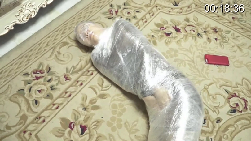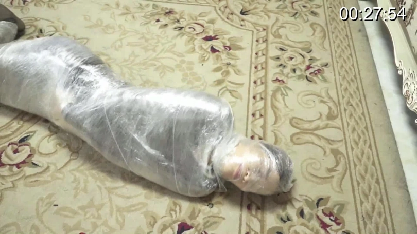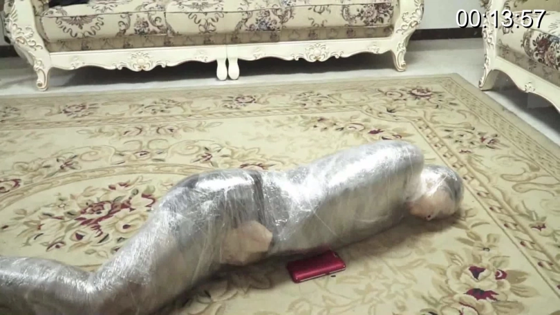 杜洋被小偷制服,完全无法逃脱。小偷却与她约定玩逃脱游戏,如果能在他回来前找到放在客厅的剪刀,并用它解开绳索就放她一命。心急如焚的杜洋拼尽全力挣扎,却因为被蒙住眼不小心将剪刀踢进沙发底下,逃脱失败的她遭到了保鲜膜全包的惩罚......