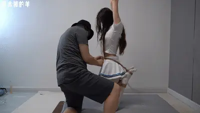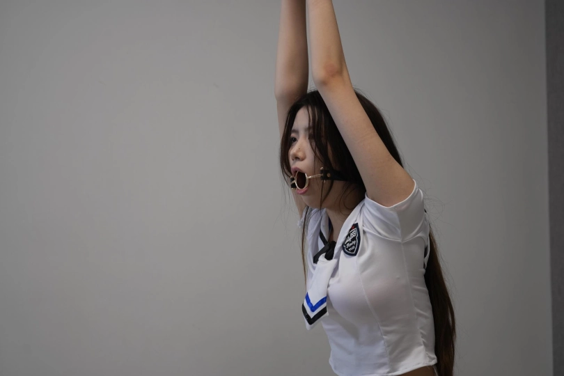 将享享的手腕用手铐铐住,再固定在头顶的铁链上面,再将脚用扎带连接在木板上,享享双腿叉开,跪在垫子上,接着就是超长时间的挠痒痒,用手刚触碰享享的腰肢,她就痒的受不了了,疯狂扭动身体,一直叫喊,但手脚被牢牢地固定住,再怎么动也无法逃脱惩罚。接着将大尺寸口枷塞进享享的嘴里,她大口呼吸,被口枷塞住嘴就说不了话,也叫喊不了了,再继续挠痒痒,享享只能扭动身体,却无法叫喊~她疯狂扭动腰肢,挠脚、腰、胳膊、腿,长时间的挠痒痒后,她的口水喷涌而出,流到了玻璃缸里面。将她的腿折叠绑起来,再用皮鞭抽打,持续挠痒痒,直到享享没有力气反抗......