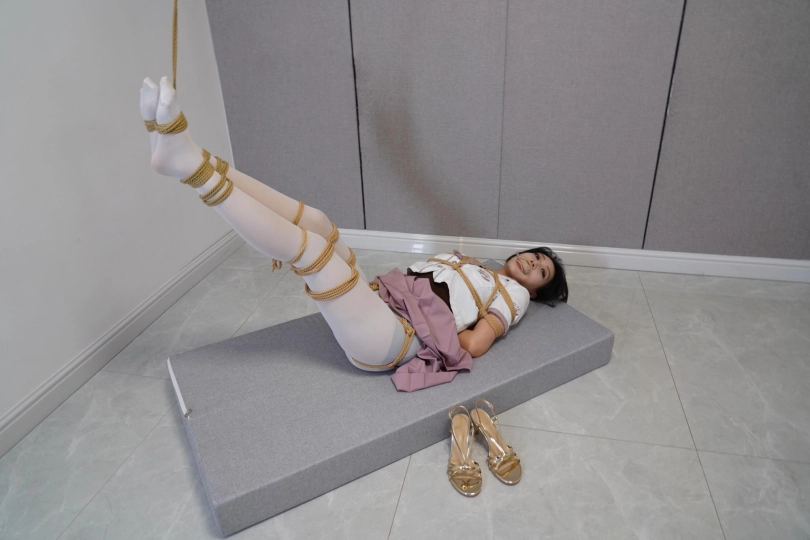 诺诺今天扮演的是粉衣女仆,先用观赏度较高的龟甲缚将她紧缚,再绑好日式胸缚和股绳,诺诺很害怕接下来会发生什么,她惶恐不安;用肉色丝袜堵住诺诺的嘴,这样她就算再挣扎,也发不出声音,为了防止她挣脱,再将她的腿牢牢绑住,诺诺四处张望,寻找逃出这个地方的出口,她不断叫喊,但无济于事,因为在这个密闭的空间里,堵住嘴根本没有人听见她的声音;接着诺诺换上JK,因为之前紧缚的绳子有松动,所以要换一种更紧的绑法对她进行束缚,绑完日式紧缚,接着绑胯缚,穿着裙子无法紧缚,只能脱掉裙子绑,诺诺疯狂挣扎叫喊,但因为被紧缚着无法挣脱,只能被脱掉裙子紧缚,全部紧缚完后,再将丝袜塞进她的嘴里,她还是没有停止挣扎,一直喊着“放开我”......最后,将她放置在软垫上,吊起她的双脚挠痒痒,诺诺痒地扭动身体,再对她进行放置,诺诺叫喊着,她期待着这场游戏赶紧结束......