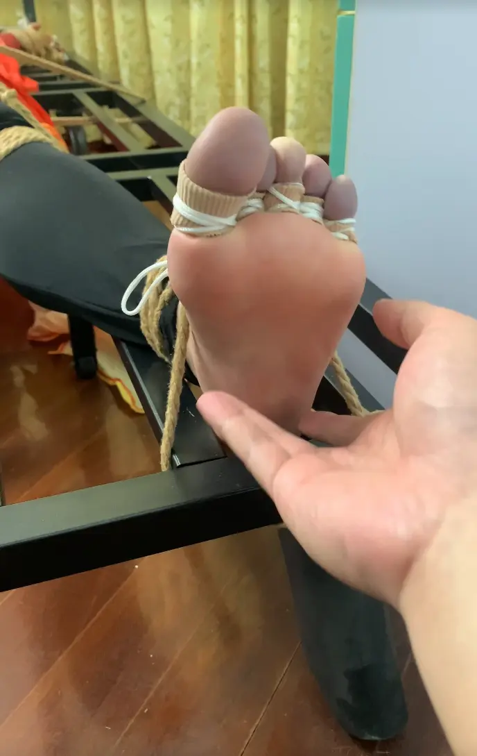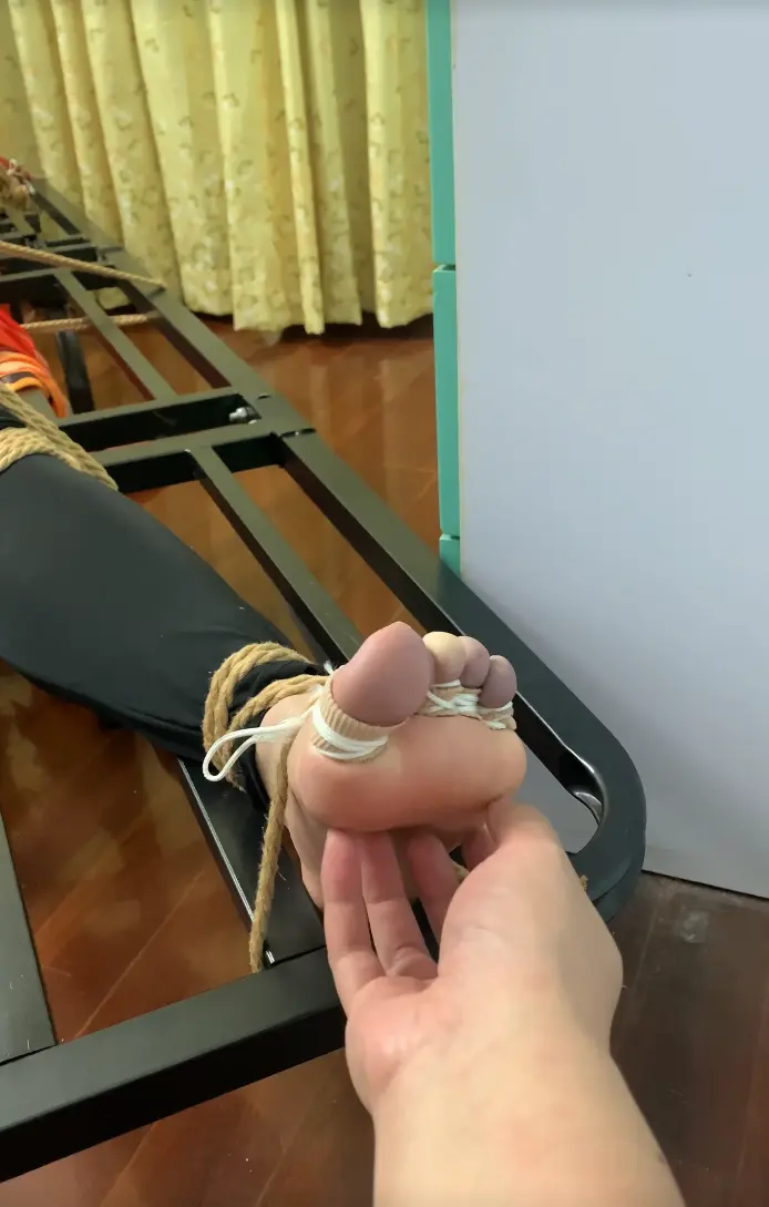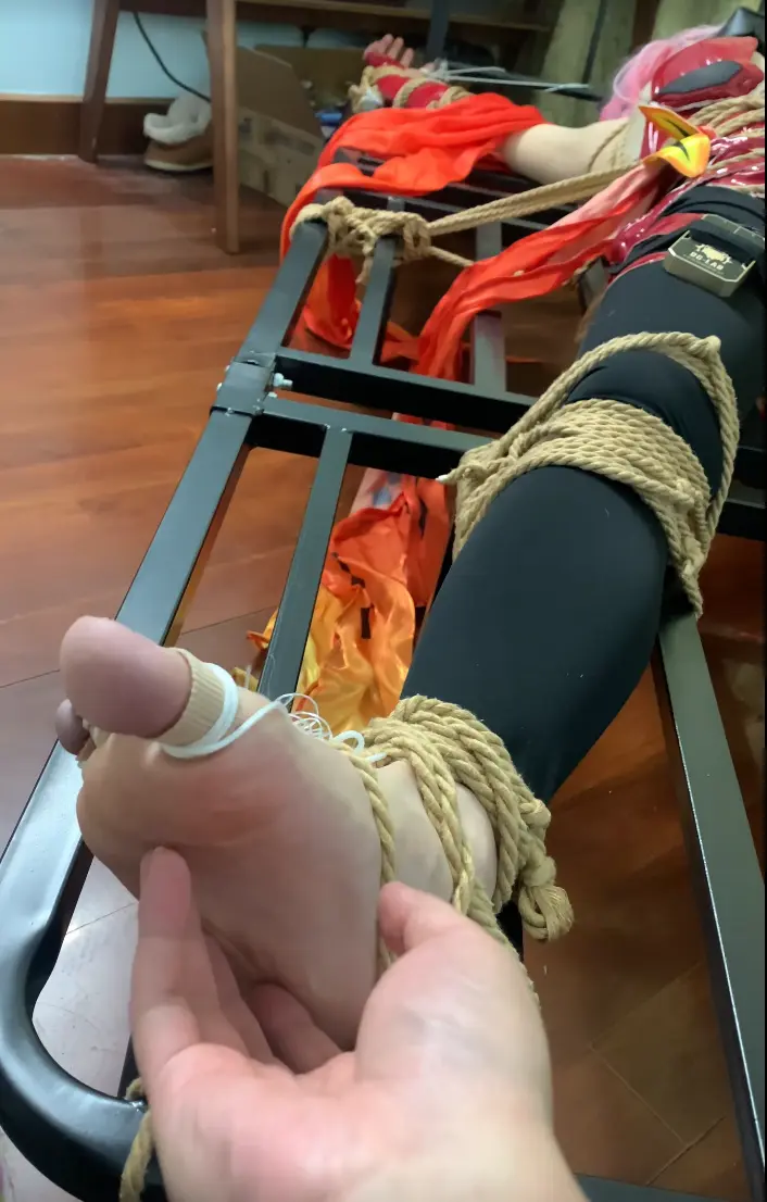 小南梁被绑在钢架床上动弹不得,连手指脚趾都被紧紧绑起来 一边忍受郊狼的电击一边忍受脚底被挠痒,还要被震动棒冲击下体