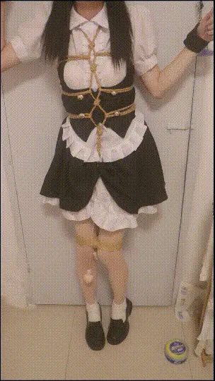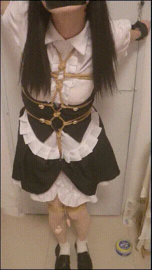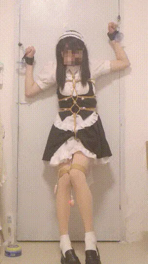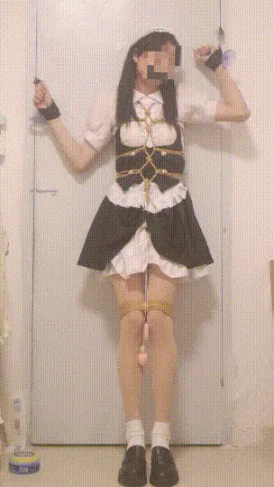 这次是赞助的女仆装,之前都没想到过要试试这样的角色呢,多亏了赞助hhh被绑在门上做成挂件了,还上了两颗td,这款其实是三个头的,之前闺蜜怕我不适应一般都是塞好其中一个,然后把剩下的两个固定在绳子上,虽然也会刺激到腰部但是比起现在两个一起来,还是好受不少...随着挣扎它们居然还会在里面打架乱动,我真是...垂下去的那颗也可恶,腿其实也是我的敏感点,它时不时还蹭几下,虽然不持续,但是老是会有吓一下的感觉= =