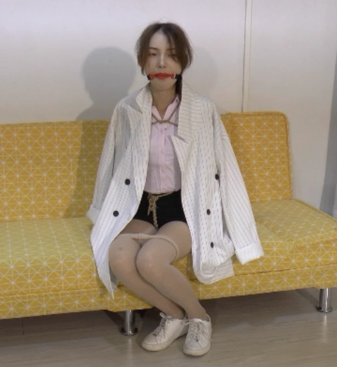 一名检察官便装在回家途中被坏人看上,尾随进了她家趁其不备将她抓住并捆了起来,捆绑的美女无法反抗 只能任由坏人把她丝袜脱到膝盖,捆上股绳,玩弄她的丝袜小脚 再绑成驷马(些许挠脚心)