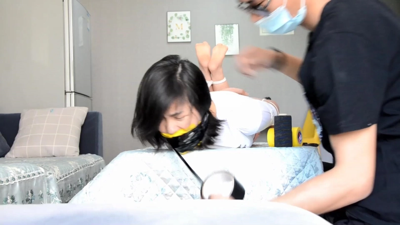 【文件大小】:918MB 模特:小楠(一个演技一般但挣扎十分卖力的模特,类似逍遥工作室的罗薇薇) 美女小楠回家被劫匪袭击,劫匪拿白色绳索将小楠捆成简易欧式,将一条小楠穿过没洗的原味内裤塞入她的口中,继续翻找财物。 穿着白色锦纶丝袜的小楠坐在床上拼命挣扎,一度挣脱了手腕处的捆绳,试图用手指拽出口中的脏内裤,但被劫匪过来发现。 劫匪将小楠五花大绑,捆成驷马,脱掉小楠脚上的白色锦纶丝袜,“挣扎了半天,出了不少汗吧!”拽出小楠口中的内裤,把这双原味白色锦纶丝袜一只只塞入小楠的口中,塞得小楠表情痛苦。 劫匪拿黄色宽胶布封在小楠嘴外,用黑色静电胶带和黑色自粘绷带缠绕封紧小楠的嘴。看着剧烈挣扎的小楠,劫匪又拿小楠穿过没洗的一条肉色连裤丝袜,先拿胶带与绷带封住小楠的眼睛,再把原味连裤丝袜套在小楠的头上,两个袜腿故意在小楠鼻子下面缠绕打结。 劫匪带着财物扬长而去,留下小楠在黑暗中剧烈呜呜闷哼挣扎着,最终精疲力尽低下头呜呜呻吟喘息着。 看点:二次捆堵、内裤塞嘴、锦纶丝袜塞嘴,胶布胶带绷带多重缠绕封嘴封眼、连裤丝袜套头、剧烈挣扎、锦纶丝袜脚面+裸足脚面特写。 ![]() ![]() ![]() ![]() ![]() ![]() ![]() ![]() ![]() ![]() ![]() ![]() ![]() ![]() ![]() ![]() ![]() ![]() ![]() ![]() ![]() ![]() ![]() ![]() ![]() ![]() ![]() ![]()