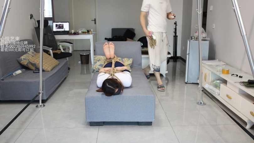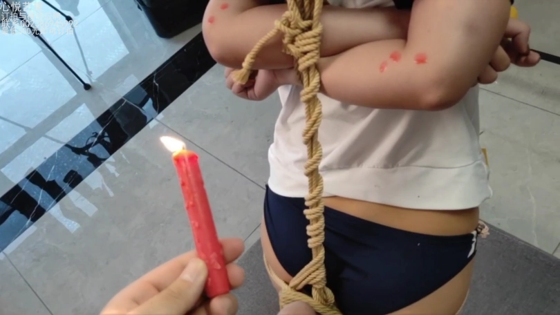 驷马吊起,膝盖着地,脚心朝天露出刚好用来滴蜡,呻吟声很大,记得不要开外音哈。胸部硬起夹上乳夹,再挂上铃铛,再粘上TD,下面内置无线TD,外置棒棒连接到脚趾上面,一挣扎就。。。哼哼。