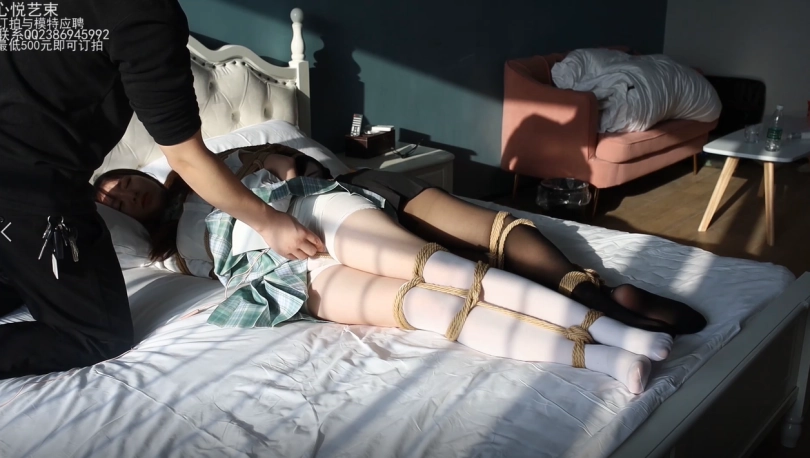 【视频时长】:00:32:00 【文件大小】:1460MB 这次制作为了观看体验购买了正版JK和工作服 不是廉价衣服 悠悠和婉儿是一对闺蜜,一天二人约着一起拍一套JK写真,就以现在很火的白丝学妹和黑丝学姐为主题 悠悠和婉儿先和摄影师确定了拍摄方式,试着拍摄了一些写真 二人选定了日系清新的拍照方式以后 摄影师就开始着手拍摄,期间摄影师还故意指导:“腿摆出来一点,来,你看闺蜜,微笑”让悠悠腿打开露出了内内 拍了几张以后,摄影师让二位女生看拍摄效果是否满意,但是女生却不小心翻到了几张女生被捆绑的照片,摄影师连忙解释,是捆绑play,女生故意要拍这种私房写真的 没想到二位女生居然没有吓一跳,反而说:“这是什么呀?好像动漫里面看到过诶,好性感哈哈”悠悠:“我们试试?”婉儿:“不要把,这个~~~”悠悠:“没事啊,反正就我们两个试试呗”婉儿:“也行” 因为摄影师没带绳子,所以叫了个外卖,但是二位女生不知道,外卖里还有一些别的“玩具”。。。。 摄影师接电话:“外卖到啦?方门口吧”摄影师去取外卖,取来塑料袋,把东西一样样拿出来:“这是手铐,这是绳子,等下就用这个绑”罗昕拿起[不可描述]:“这是什么呀”林清也拿起[不可描述]:“你买这个干吗呀?”摄影师:“这是送的,放心用不到”说着从二位女生手里拿过[不可描述][不可描述],放回了袋子,随手放在桌上。 摄影师拿起手铐:“这个,谁要呀”悠悠:“我来吧”说着摄影师把悠悠的手,反铐在窗户栏杆上,随后,手铐钥匙放在电视上,开始捆绑婉儿,将婉儿绑成驷马,婉儿被绑住没法动:“帮我拉一下裙子,有点露”摄影师帮忙把裙子整理好,摆在悠悠脚边。开始返回捆绑林清脚,捆绑好以后,摄影师把婉儿手机放在脚右边1m左右,开始指导拍照,让悠悠双腿左右上下调整,摆比较性感姿势。 拍了一会儿,摄影师突然接到一个电话:“什么?行,我过来”。 摄影师:“我之前那些捆绑私房照被他们放到了网上,现在女孩叫了警察说怀疑是我干的,我得赶紧去一下”说完,往外走,悠悠:“你帮我们先解开呀” 摄影师回头:“我先帮你松开一点脚吧,你自己等下松一下去拿钥匙”说完摄影师跑回来把悠悠脚解开一点,就跑了 悠悠蹭掉脚上的绳子问:“钥匙呢”婉儿:“不知道啊,你后面看看”悠悠艰难扭头看了一眼:“没有啊,这里都没有”婉儿:“对了 我刚刚记得他放在电视上了”悠悠:“我被拷着啊,我帮你松开你试试”悠悠用丝袜脚试了一下,根本无法解开婉儿的绳子,两人挣扎了一会,发现根本无用,于是悠悠想到了右边的手机:“只能打物业电话试试了” 婉儿:“我这样,被看到了不好吧”悠悠:“这都什么时候了”婉儿:“好吧”悠悠用丝袜脚趾开始按手机,电话接通,悠悠:“你好,我们这边201房间出了点事儿,可以请你们物业过来帮个忙吗” 一会物业来了,看到这一幕先是震惊,婉儿解释道:“我们刚刚在拍照,摄影师急着走了,能不能帮我们解一下”物业小哥:“哦哦,吓死我了,这就来” 小哥帮婉儿解开驷马连着脚的绳子,眼睛却一直盯着婉儿的屁股,悠悠:“乱看什么啊,还不帮她遮一下”说罢小哥不太情愿得把婉儿裙子拉了一拉,解开后连着脚的绳子后,小哥把婉儿一跳一跳扶到床上,把婉儿脚跪地趴在床上:“你把手抬高,不然我弯着腰解绳子太累了”说罢婉儿努力把反绑的手抬高,屁股撅起,物业小哥:“再高点”眼睛却故意往婉儿撅起的裙底看。悠悠生气地说:“你是故意的吧,小心我告你”物业小哥:“真是不识好人心”说罢快速地走了 悠悠:“来,我用嘴巴帮你解”婉儿艰难地爬起往悠悠身边跳过去 不料物业小哥返回,拿了两杯水,二人惊慌:“你要干嘛?”物业小哥不由分说,往婉儿嘴里灌去,悠悠:“你要干嘛!我要报警啦”小哥又拿起另一杯水,往悠悠嘴里灌去,一会二人都晕倒了 二人慢慢睁开眼睛,眯着眼睛醒来,二人发现被 背靠背 一起绑在了床上,脚、股绳,和上半身被绑在了一起,手指还被胶布缠成了球 小哥,“没想到刚才在你屋里还找到了这个”,说着摸了一下悠悠裆部的[不可描述],把遥控器挂/放在了床下,然后从杯子里倒了一些液体往婉儿的裆部和股绳来回抹,说:“这是我刚刚买的刺激剂,会让你敏感很多 现在我要打开你闺蜜的[不可描述],让她不断挣扎,看是她为了你能忍受,还是会乱动刺激你,这房间不用叫了,我是物业我最知道,你们边上都没有住户,敢报警,我就把你们昏迷我拍的照片都发网上!”说罢,打开了悠悠的[不可描述],走了 悠悠开始挣扎,乱动,往外([不可描述]遥控器方向)扑,想关掉遥控器,牵着着婉儿的股绳,婉儿刺激地加紧大腿,不断摩擦,发出“嗯嗯声”一会儿婉儿不断告诉悠悠:“别动了,我很难受”悠悠停了一会,但是感觉受不了,还是想挣扎解缚,有一会儿婉儿:“我刚刚喝了好多水,还被他上了药,快憋不住了!”悠悠继续挣扎,又一小会儿,婉儿大声呻吟一声,失禁了。顺着床铺绳子染湿了两个人。 第一集结束 第二季预告部分: 不知过了多久,悠悠手上的胶布开了,悠悠伸出手指,帮婉儿解开了手上的绳子,刚想让婉儿帮自己解缚,看着婉儿,但是婉儿却说:“刚刚你这么自私,那就别怪我了” ![]() ![]() ![]() ![]() ![]() ![]() ![]() ![]() ![]() ![]() ![]() ![]()