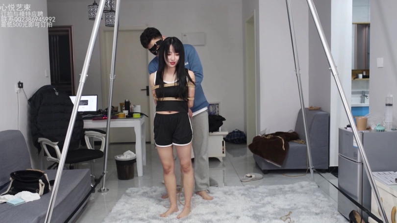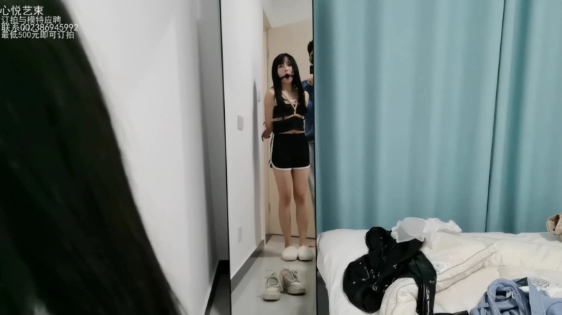 娇小可爱蝴蝶酱又被主人捆绑啦,捆缚起来在房间探索,还被强制带到镜子面前欣赏自己被绑缚的身姿,哎呀好娇羞。最后又被主人驷马吊缚起来tk折磨腹部和小脚丫,差点就哭了。
