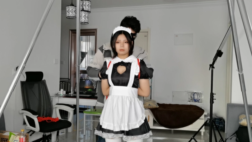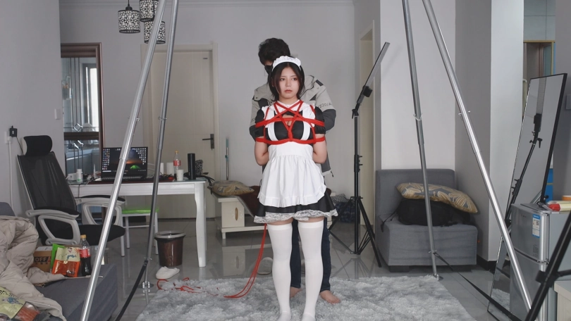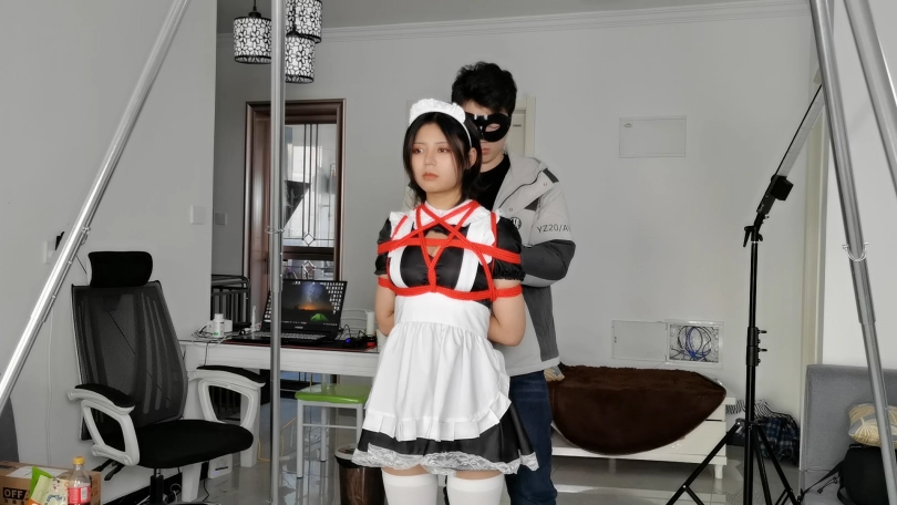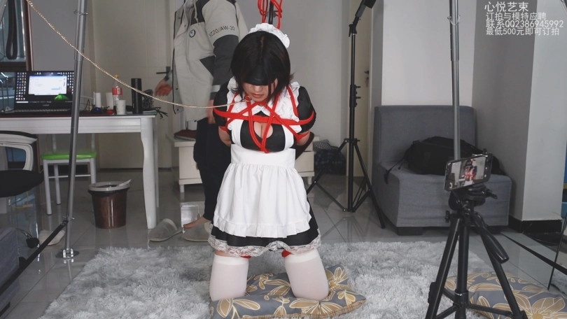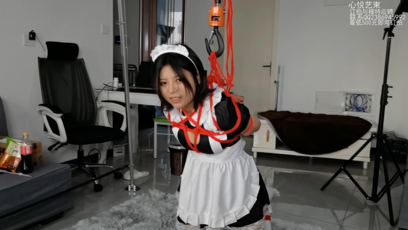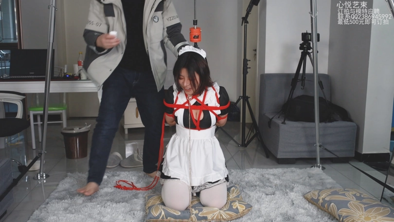小女仆中午打碎了我最心爱的花瓶,我很生气,后果很严重。要好好罚一罚。吊缚起来只能膝盖着地,再不停骚弄她让她艰难的维持平衡,情不自禁来了一句”你好坏哦“