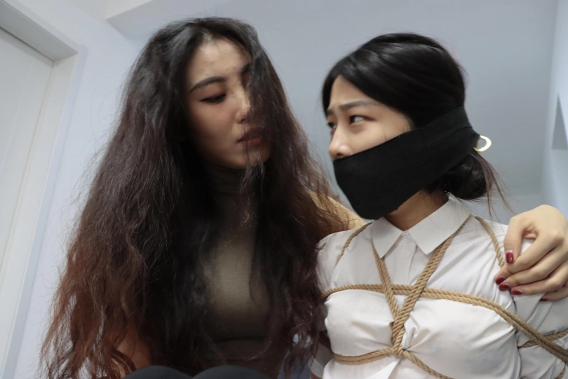 【视频时长】:00:41:18 【文件大小】:1502MB 一栋楼里 一个男人正在打电话(以下简称男):"明白,姐,您在三爷面前多替我说说话,再宽限几天,我肯定把货送过去。您辛苦,您辛苦。" 挂了电话,转身对坐在沙发上的妻子说:"你那边怎么样了?买家有点着急了,再交不了货咱们都得完蛋!" 女人(恩可饰):"最近刚好锁定一个,美女大学生,刚毕业,现在在房产中介干销售,我约了明天来家里聊房子,给。"说着把手机上的照片递给了男人,"怎么样,不错吧?" 男:"各方面条件都不错,行,就她了。"接着说:"人贩麻三,三爷,当年何等威风,现在一个小小的东南亚富商就能让他低三下四,看来这活儿是干不长久了,老婆,咱们干完这一单就金盆洗手吧。开个店,过上安稳日子。" 女:"好,我都听你的~" 女人站了起来,两人搂在了一起 男:"对了,老婆,我今天去储物间看了一下,东西不太够。" 女:"放心,我晚上去买。" 第二天早上 咚咚咚 "来了。" 恩可起身开门。只见穿着商务装高跟鞋的米娅站在了门外 米:"您好,姐,我是来给你介绍介绍房子的。大哥您好。" 男人点头示意。 恩:"快请进.。" 两人坐到了沙发上,米娅向雨晨介绍起了房子,雨晨有一搭没一搭的应着声,向男人眼神示意。男人走向储物间。 过了一会,男人将两大包东西放到了茶几上并坐在米娅的另一边,开始理绳子。米娅一看这些东西觉得不对劲,便问:"姐,这些东西是?" 恩可邪魅一笑,拿出一卷黑色电工胶布,撕下一段。 米娅见状去,刚想起身却被背后的男人反扭双手,绑了起来。 "啊!,你们这是干什么,救…"恩可将一块胶布贴了上去。 "呜呜呜呜"米娅瞪大眼睛望着恩可,似乎不敢相信这是真的。 男人将米娅五花大绑加日式 "老婆,抱住她的腿!"米娅当然激烈挣扎,可是徒劳,很快,大腿,膝盖上下,小腿,脚踝分别被五段绳子困得结结实实,又被加了股绳,再也动弹不得。 "呜呜呜呜"米娅现在只能无助地闷叫。 男:"老婆,我去联系上家,你看着她。" 女:"好" 米娅用恳请的眼神看着恩可,发出呜呜呜的声音,似乎有话想说。 "想说话?" 呜呜呜呜呜呜呜 "我给你找这个机会,但是别耍花招",撕下胶布 米娅:"大姐,我求求你,求求你,放了我吧" 恩可:“放了你? 把你放了我们吃什么呀?” 米娅:“大姐,你们要多少,我保证把钱都给你,把我放了吧!” 恩可:"姑娘,坏规矩的事情我们可不干,行了,既然你是为了说这个 那还是闭嘴吧。" 米娅:"别,大姐,我… 呜呜呜呜"(无奈的表情) 恩可拿出一条白毛巾,不由分说地塞进米娅的嘴里 恩可抬起米娅的下巴说:“其实我们这个和媒婆差不多,只不过手段粗暴了点,放心,我们会给你找个好人家...” 米娅听到这崩溃了,摇着头拼命大叫 恩可:"到时候吃香的喝辣的,可别为了我们,哈哈哈哈哈。" 米娅:"呜呜呜呜(带哭腔)"_ 这时,男人进来了:"上头说了,夜里运走。" 米娅:"呜呜呜呜" 恩可:"时间还早,老公,先把她嘴处理一下。" 米娅,听了,连忙摇头:呜呜呜呜 恩可取出毛巾,拿着一双肉色裤袜要堵住米娅的嘴,米娅摇头:"大哥,大姐,我不会乱叫的,别堵我的嘴……不要!" 男人从背后用双手固定住米娅摇动的头:"哪儿他妈那么多废话,老实点!" 恩可捏着米娅的脸颊将裤袜一点一点塞了进去,可能是觉得不够满,又塞了几双短丝袜(根据模特承受能力定,最好三双),米娅的脸颊鼓了起来。 米娅:呜呜呜呜 恩可又取下四段电工胶布,从人中一直封到下巴。接着又取出静电胶布缠了两圈上去,最后又馋了两圈绷带。恩可抬起米娅的下巴看了看,满意的说:"这样才让人放心啊,美女。老公,你先歇着去吧,这里交给我了"下(堵嘴片段多特写) 恩可脱下了米娅的高跟鞋,米娅摇了摇头开始激烈挣扎 "看来你还有力气啊。"恩可挠了起来 呜呜呜呜,米娅的脚不停扭动(特写) "让我看看你哪里最怕痒,是腰上呢,还是脚上呢?"说着便脱下了米娅脚上的短肉色丝袜挠了起来,又挠了挠米娅的腰。同时还不忘拉扯股绳。 过了一会儿,恩可脱下自己的鞋子,让米娅闻脚 恩可:"怎么样,味道不错把?" 米娅呜呜着想躲掉,哪知恩可将双脚踩在了米娅脸上,米娅动弹不得,只能忍受着这一切,痛不欲生。 天渐渐黑了,男人进来告知要运米娅走,米娅发出惊恐地呜呜声,同时下意识地想逃,奈何很快就被控制住了。 两人用胶带封住米娅的眼睛又缠了两圈绷带,米娅用尽力气想躲可还是徒劳无功。 接着用短丝袜套住米娅的双手再用胶带缠住。 恩可给米娅穿上高跟鞋和短丝袜,用绳子将鞋和脚固定住。 恩可细心地给米娅带上了耳塞,这样米娅的世界就只剩自己的呜呜声了 两人检查了一下各处的绳结,确认无误后装箱(给米娅特写镜头)。 ![]() ![]() ![]() ![]() ![]() ![]() ![]() ![]() ![]() ![]() ![]()