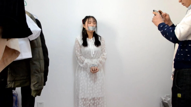 沈心是一个长像甜美的女孩,独自在家的她正在玩着手机突然进来了人将她捆绑了起来,然后使用灰色胶布封嘴,喜欢胶布的朋友福利