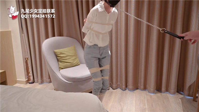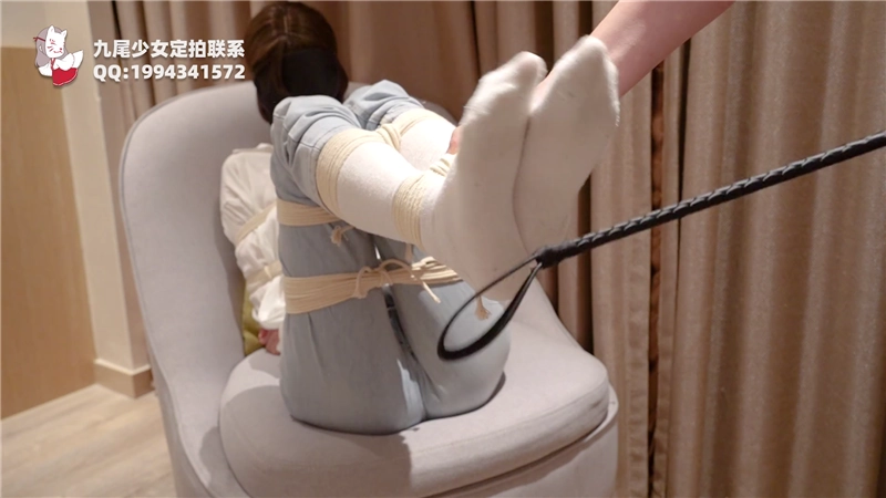 小九尾的常服牛仔裤+白袜被全身捆绑!TK双足调教,